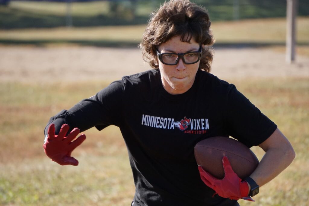 Although I was a lifelong football fan, growing up I never thought I’d have the opportunity to play football. When I found the MN Vixen, I not only found a place to play, but I also gained a second family. Football has become my outlet, my safe space, and my life.